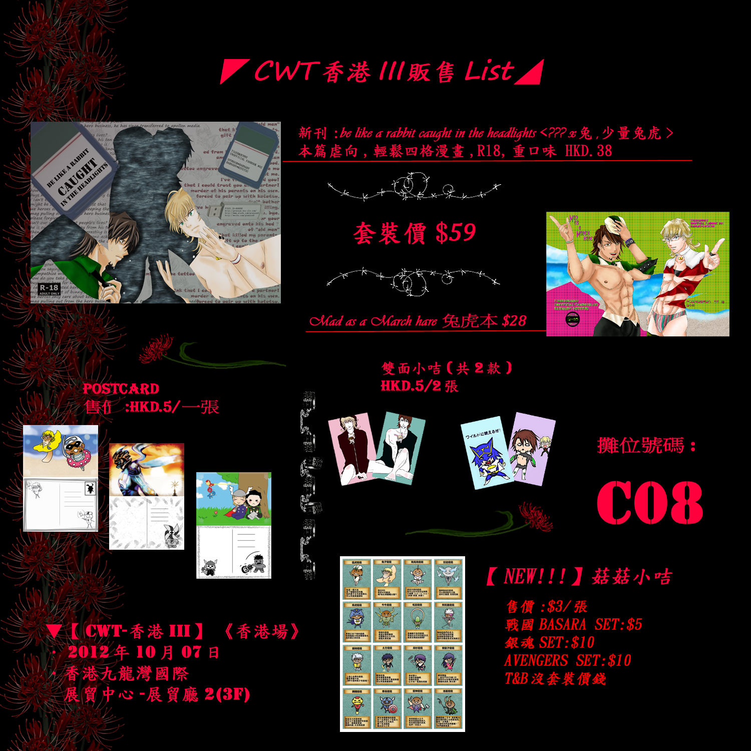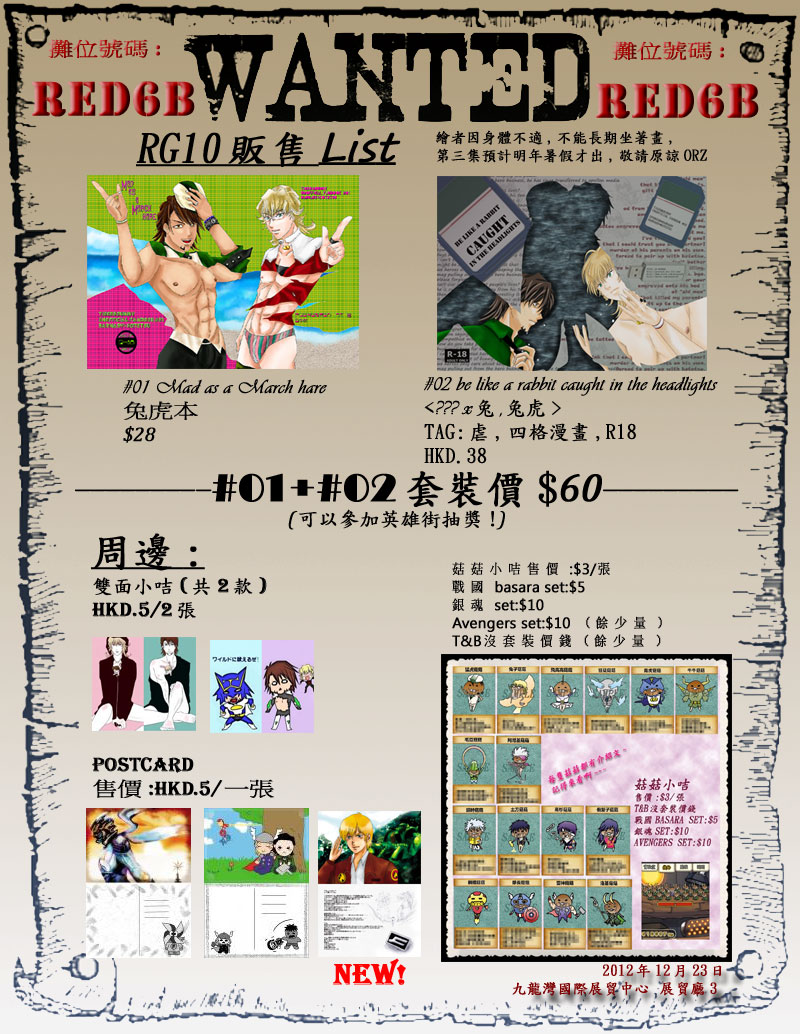| be like a rabbit caught in the headlights 新刊:モブ兎+兔虎本 32p HKD.38 | |